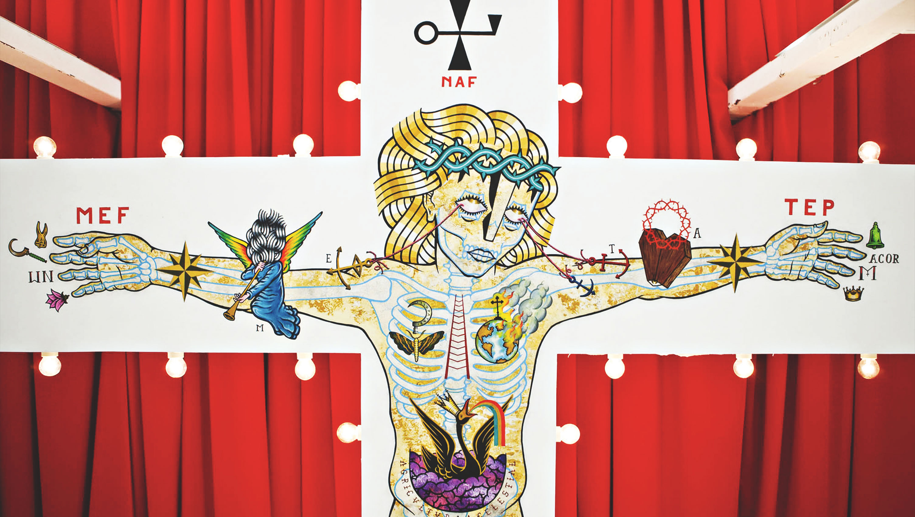 Na Choque Cultural, esses universos se misturam em desarranjo estético “quase perfeito”. Tudo que é muito óbvio passa longe de lá e as obras e o espaço se mesclam em múltiplas variações